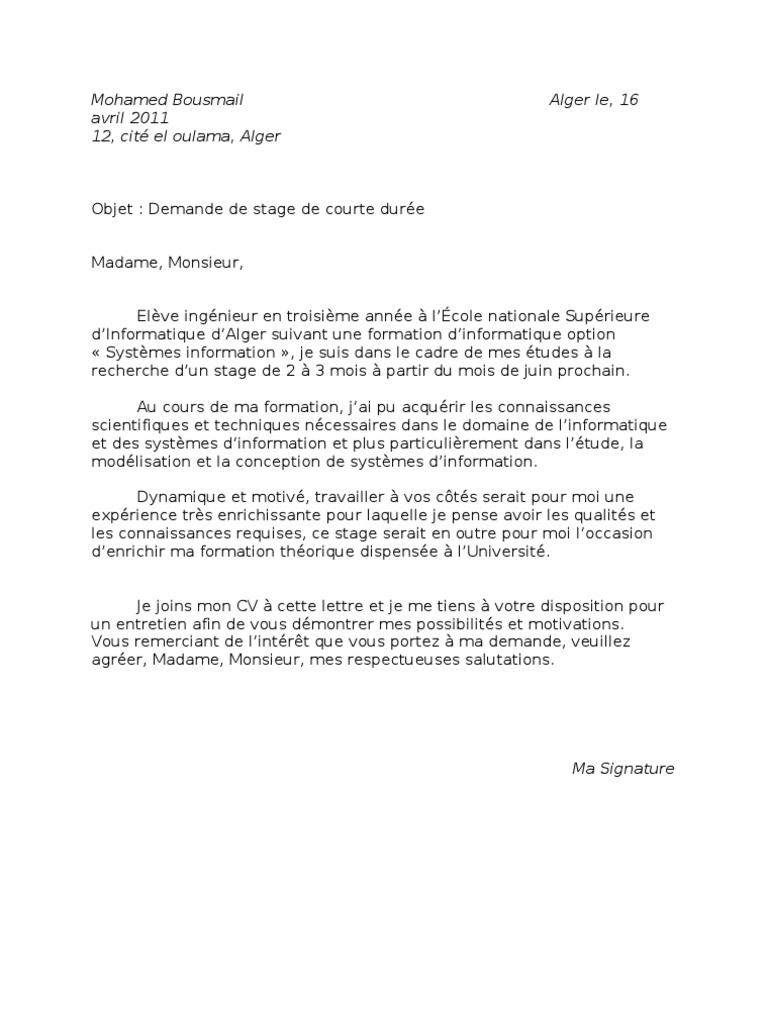 Lettre de motivation stage court - pt.scribd.com